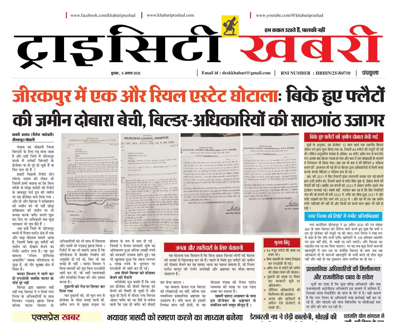 खबरी प्रशाद अखबार के पास शिकायतकर्ता द्वारा उपलब्ध कराए गए सभी दस्तावेज़ मौजूद हैं। हम जीरकपुर क्षेत्र में निवेश करने वाले लोगों से अपील करते हैं कि किसी भी प्रोजेक्ट में पैसा लगाने से पहले सावधानी बरतें।