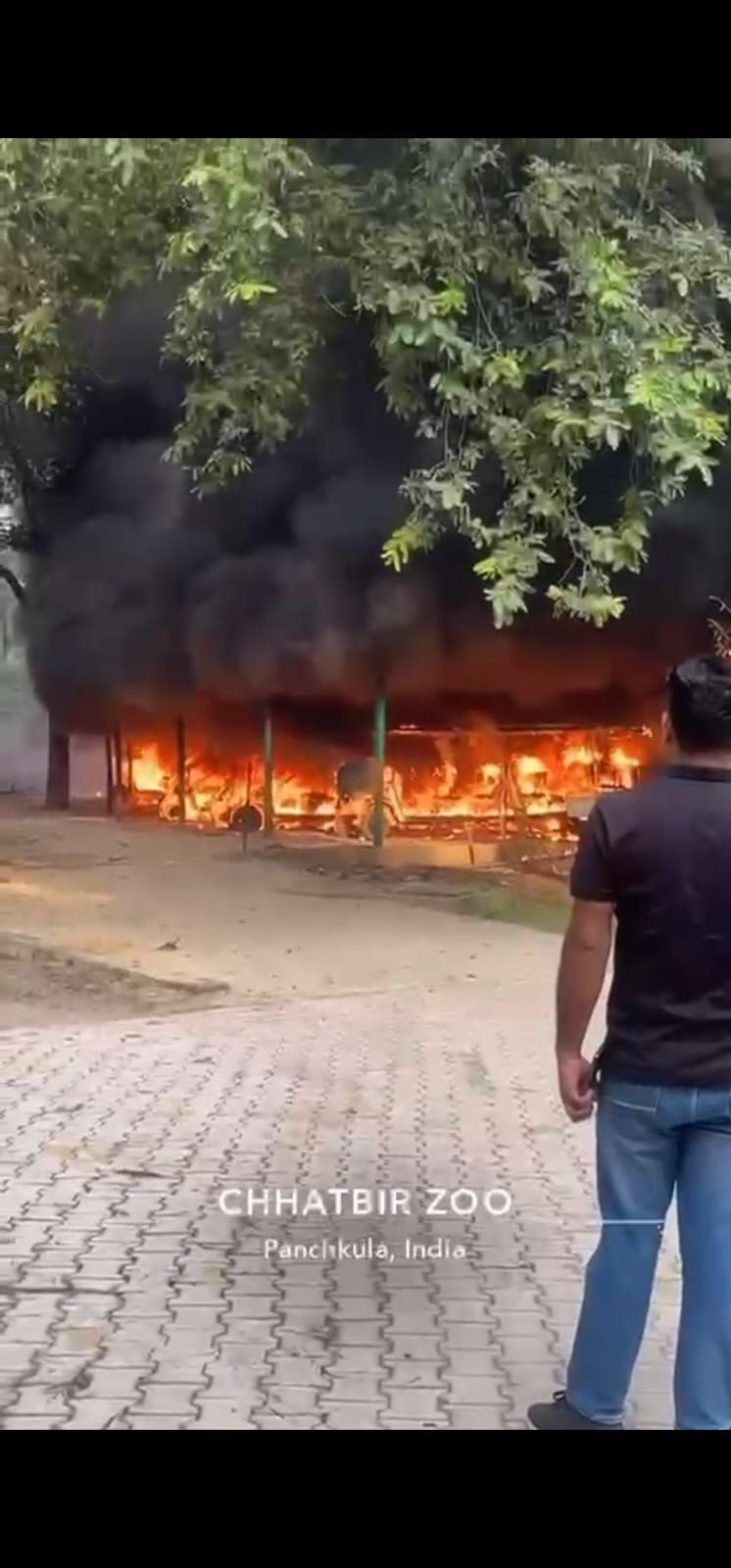 छतबीड़ चिड़ियाघर में इलेक्ट्रॉनिक गाड़ियों में लगी भीषण आग, लाखों का नुकसान