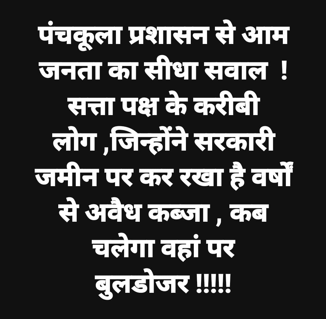पंचकूला शहरी क्षेत्र में कई अमीरों ने सरकारी जमीन पर कब्जा कर रखा है पर प्रशासन की निगाहें वहां तक नहीं जाती हैं क्योंकि यह सभी प्रतिष्ठान सत्ता पक्ष से या तो सीधे तौर पर जुड़े हुए या फिर अप्रत्यक्ष तौर पर जुड़े होते हैं । यही वजह है कि गरीबों की बस्ती तक पहुंचने वाला पीला पंजा यहां तक नहीं पहुंचता । और अगर कभी कबार गलती से पीले पंजे वाली गाड़ी उनके प्रतिष्ठान तक पहुंच भी जाती है तो उसे अधिकारी की खैर नहीं होती जिसने आर्डर दिया होता है । क्या यही कानून का राज है । जहां पर कानून के दोहरे मापदंड हो , यही कानून है ।